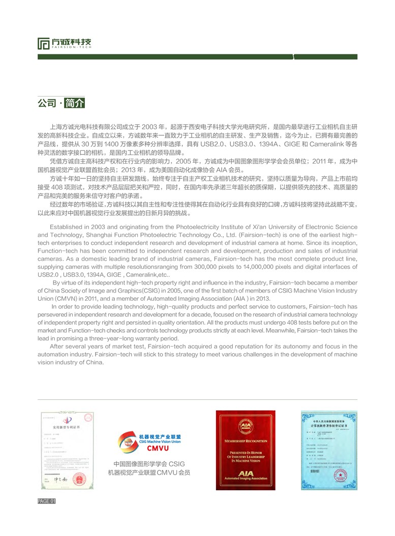方誠十年如一日的堅持自主研發(fā)路線,始終專注于自主產(chǎn)權(quán)工業(yè)相機技術(shù)的研究,堅持以質(zhì)量為導(dǎo)向,產(chǎn)品上市前均接受408項測試,對技術(shù)產(chǎn)品層層把關(guān)和嚴(yán)控,同時,在國內(nèi)率先承諾三年超長的質(zhì)保期,以提供領(lǐng)先的技術(shù)、高質(zhì)量的產(chǎn)品和完美的服務(wù)來信守對客戶的承諾。