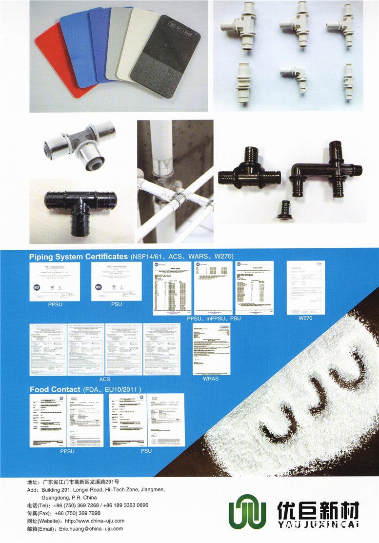 優(yōu)巨公司聚芳醚砜系列產品已通過美國UL防火安全,F(xiàn)DA食品安全,NSF飲用水安全,ISO10993醫(yī)療衛(wèi)生安全及歐盟Rohs2.0,REACH等環(huán)保安全方面權威認證;產品遠銷北美及歐洲主要發(fā)達國家,獲得全球各應用領域戶的普遍認可。