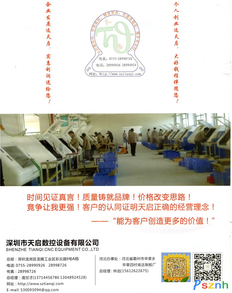 深圳市天啟數(shù)控設(shè)備有限公司是一家集技術(shù)研究、開發(fā)、生產(chǎn)和銷售于一體的高科技企業(yè)。公司本著誠信、進(jìn)取的精神,堅(jiān)持“以人為本,客戶至上”的信念,開創(chuàng)行業(yè)先鋒,通過不斷的改進(jìn),使產(chǎn)品性能、質(zhì)量均居同行之首。公司的每一款產(chǎn)品真正的體現(xiàn)著現(xiàn)代人的消費(fèi)觀念:“價(jià)廉物美”。天啟數(shù)控將在競爭激烈的市場中立于不??!