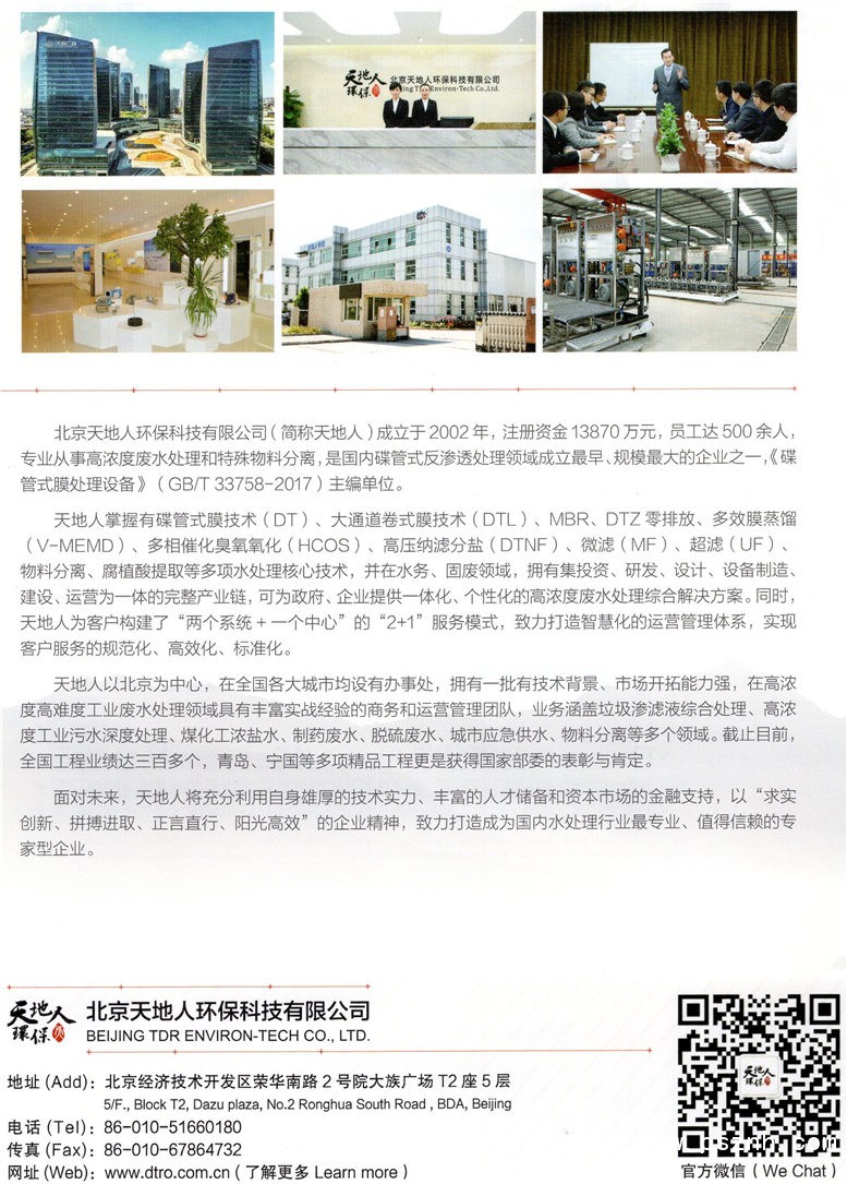 北京天地人環(huán)??萍加邢薰? 碟管式膜技術(shù)(DT) 大通道卷式膜技術(shù)(DTL) 高壓納濾分鹽技術(shù)(HP-NF) MBR技術(shù) DTZ零排放(DTZ) 多效膜蒸餾技術(shù)(V-MEMD) 多點擊:702 評論:0 查看原圖 |