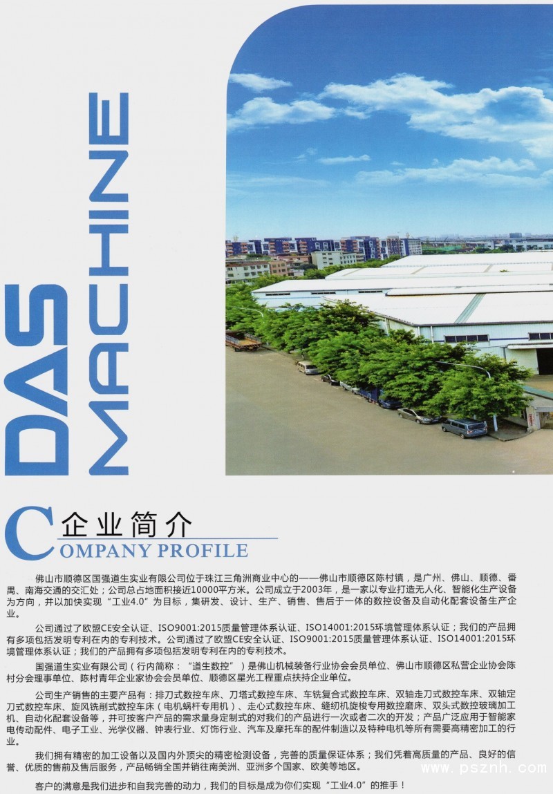 國強(qiáng)道生實(shí)業(yè)有限公司(行內(nèi)簡稱:“道生數(shù)控”)是佛山市機(jī)械裝備行業(yè)協(xié)會(huì)會(huì)員單位、佛山市順德區(qū)私營企業(yè)協(xié)會(huì)陳村分會(huì)理事單位、陳村青年企業(yè)家協(xié)會(huì)會(huì)員單位、順德區(qū)星光工程重點(diǎn)扶持企業(yè)單位。