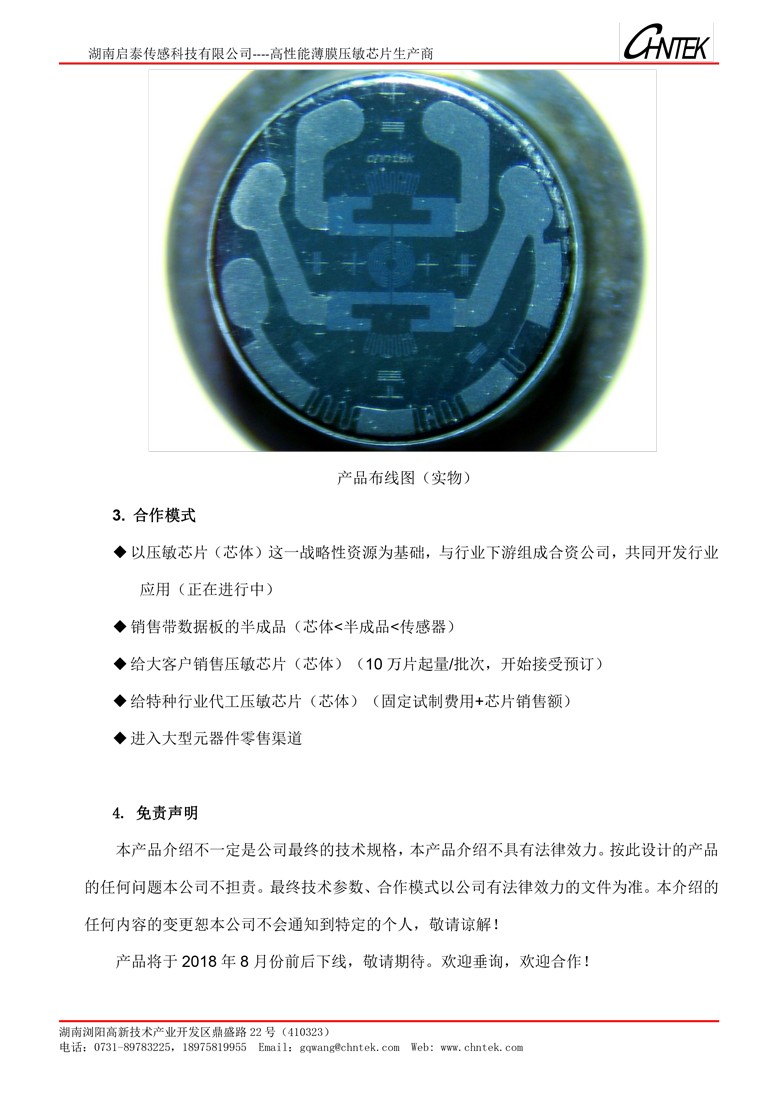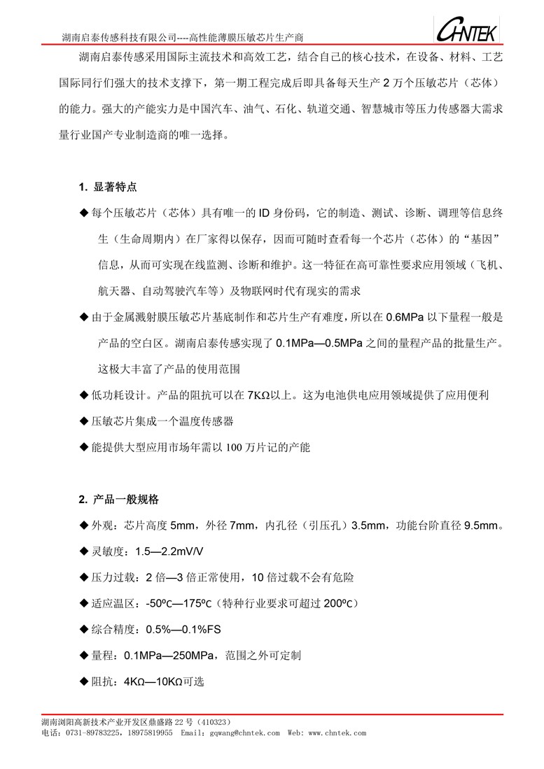 湖南啟泰傳感科技有限公司成立于2006年3月份,是一個民營現(xiàn)代制造企業(yè),從事泛集成電路(特色集成電路)工藝,專注于MEMS技術(shù)和產(chǎn)品,尤其偏重于非半導(dǎo)體基底工藝和技術(shù)。通過十多年的不懈努力,啟泰傳感攻克了異質(zhì)膜關(guān)鍵工藝與技術(shù),并將之率先應(yīng)用于金屬基底壓敏薄膜芯片的生產(chǎn)上,使之大規(guī)模工廠產(chǎn)業(yè)化,填補了我國工廠規(guī)模生產(chǎn)線的空白,為高端應(yīng)用領(lǐng)域壓力傳感的國產(chǎn)化奠定了堅實的基礎(chǔ)。
