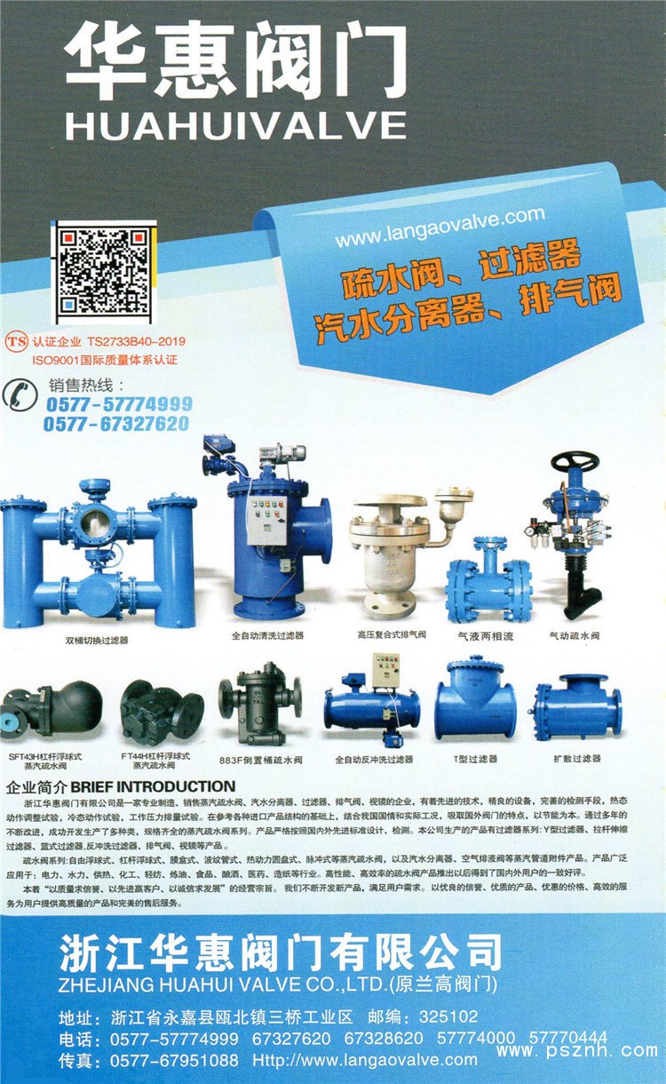 浙江華惠閥門有限公司是一家集設計、開發(fā)、生產(chǎn)、銷售、服務于一體專業(yè)制造過濾器、節(jié)能蒸汽疏水閥、汽水分離器等管道配套設備的技術(shù)企業(yè)。公司積極引進材料、設計、機械制造等各類專業(yè)人才,在產(chǎn)品設計和制造中廣泛應用CAD/CAM技術(shù),擁有高精度的加工專業(yè)機器、現(xiàn)代化探傷等設備,確保每個零部件的精度和機械性能。運用蒸汽調(diào)試協(xié)同對每個產(chǎn)品進行冷態(tài)調(diào)試和熱態(tài)試驗,確保出廠的每一個產(chǎn)品都是優(yōu)質(zhì)產(chǎn)品。產(chǎn)品現(xiàn)廣泛用于電力、水力、供熱、化工、輕紡、煉油、食品、釀酒、造紙等行業(yè)。節(jié)能的疏水閥產(chǎn)品推出以后,多年來得到了過內(nèi)外用戶的一致好評。歡迎各界朋友、新老客戶前來考察交流。竭誠與廣大客戶建立起長期穩(wěn)定的合作伙伴關系,讓我們攜手并進,共謀發(fā)展,共創(chuàng)未來。