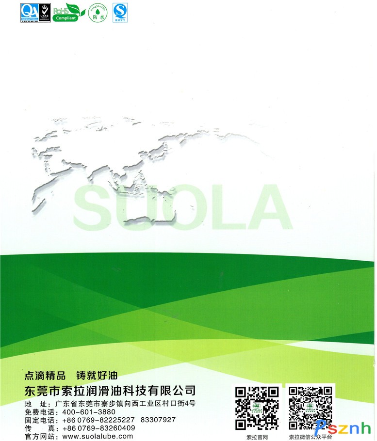 東莞索拉潤滑滑科技有限公司是一家擁有18年生產(chǎn)經(jīng)驗(yàn)的專業(yè)制造商   座落在廣東制造名城東莞市寮步向西工業(yè)園區(qū) 是一家集研發(fā),生產(chǎn),銷售為一體的高新技術(shù)企業(yè) 18 年專注于金屬加工油的研發(fā)和生產(chǎn),主要產(chǎn)品有有環(huán)保切削液 玻璃切削液 切削油 深孔鉆切削油 防銹油 成型油 拉伸油 液壓油 導(dǎo)熱油等,產(chǎn)品適用于汽車制造、機(jī)械、冶金、采礦、鋼鐵、電梯、等領(lǐng)域,以優(yōu)越的品質(zhì)、專業(yè)的技術(shù)、完善的服務(wù),贏得了國內(nèi)外眾多品牌企業(yè):三星、