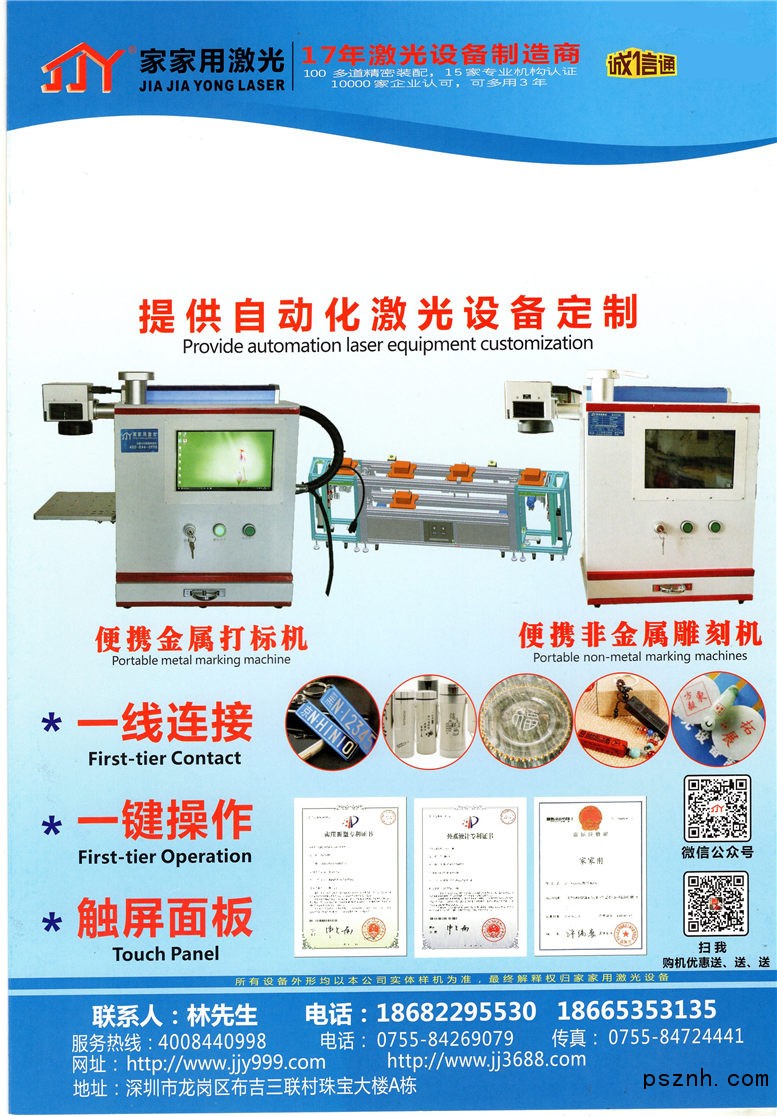 新型光纖激光打標(biāo)機(jī)_端面泵半導(dǎo)體激光打標(biāo)機(jī)_二氧化碳激光打標(biāo)機(jī)_紫外激光打標(biāo)機(jī) _激光微孔機(jī)_激光打碼專用機(jī)-深圳市家家用激光設(shè)備有限公司點(diǎn)擊:3549 評(píng)論:0 查看原圖 |