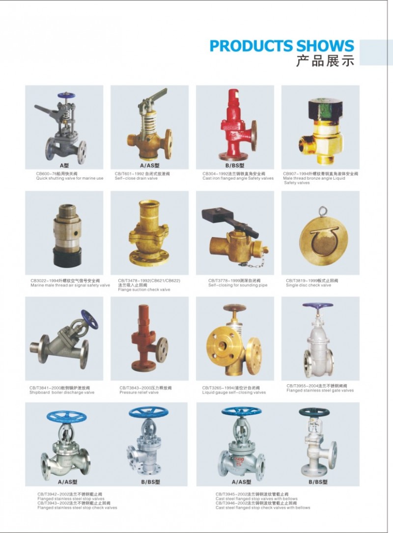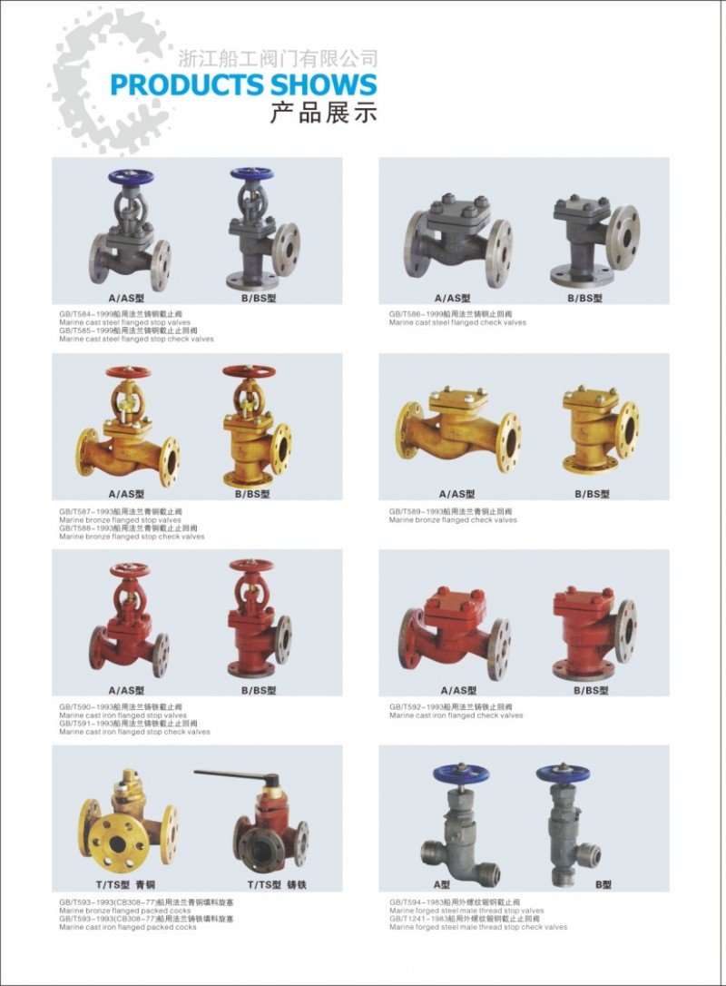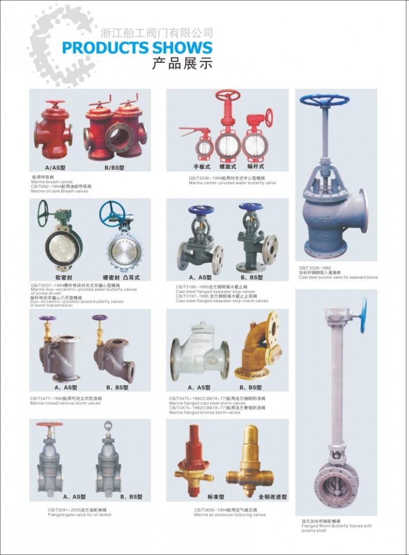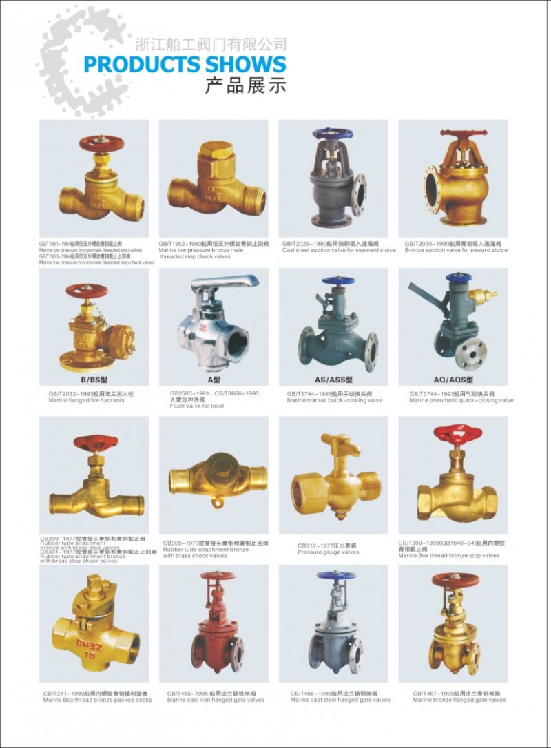 浙江船工閥門有限公司有著二十多年專業(yè)生產(chǎn)船用閥門歷史的船舶配套行業(yè)重點(diǎn)企業(yè),廠區(qū)座落于溫州市區(qū)甌江北岸,現(xiàn)有廠區(qū)面積4500平方米,在建廠房(20畝)24000平方米,產(chǎn)品品種含300多個(gè)系列1000多種規(guī)格、年產(chǎn)值達(dá)5000萬(wàn)元。“船工牌” 船用閥門91年經(jīng)中船總公司許可生產(chǎn)(證號(hào)XK26—1040020)、91年經(jīng)國(guó)家船檢局型式認(rèn)可、2004年質(zhì)量體系通過(guò)中國(guó)船級(jí)質(zhì)量認(rèn)證公司9000認(rèn)證、2006年通過(guò)國(guó)家漁檢局型式認(rèn)可、2008年通過(guò)中國(guó)船級(jí)社型式認(rèn)可、2008年通過(guò)法國(guó)船級(jí)社認(rèn)可。船用產(chǎn)品均經(jīng)“CCS”“ZC”“ZY” “BV”檢驗(yàn)出廠。石油、化工閥門經(jīng)國(guó)家技術(shù)監(jiān)督局鑒定合格。