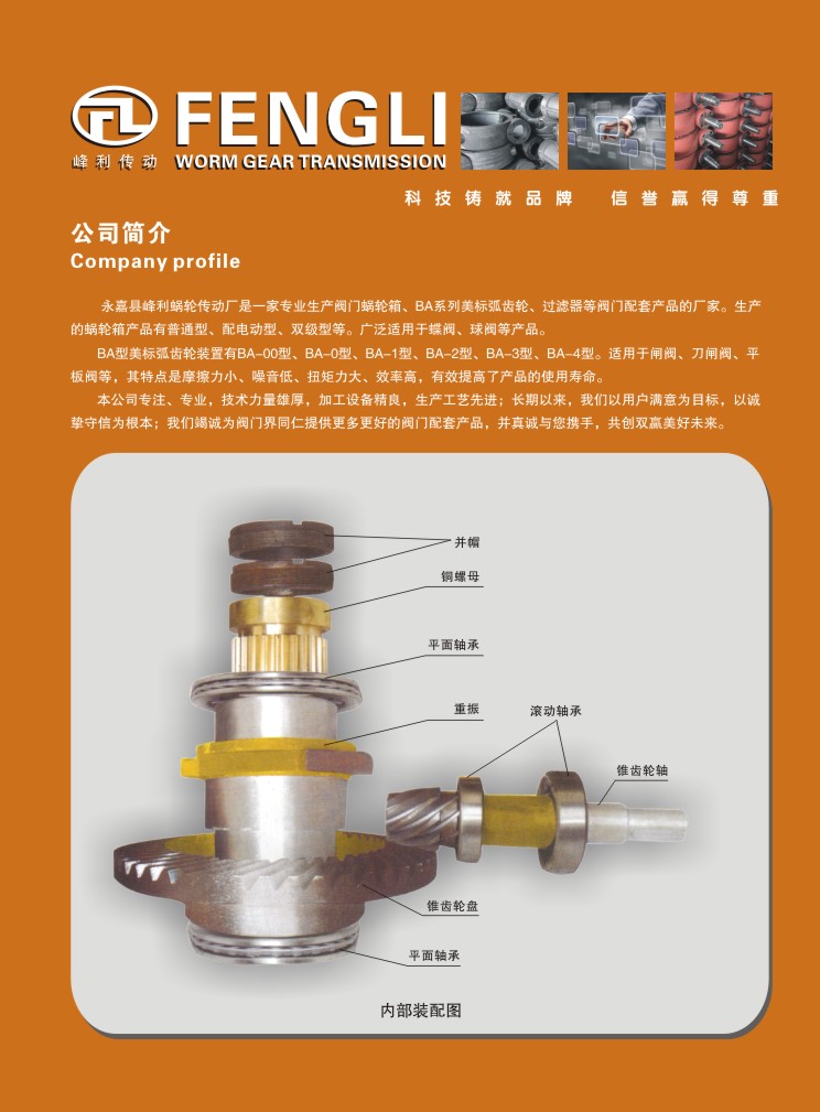 永嘉縣東甌峰利蝸輪廠是一家專業(yè)生產閥門蝸輪箱、BA系列美標弧齒輪、過濾器等閥門配套產品的廠家。生產的蝸輪箱產品有普通型、配電動型、雙級型等。廣泛適用于蝶閥、球閥等產品。