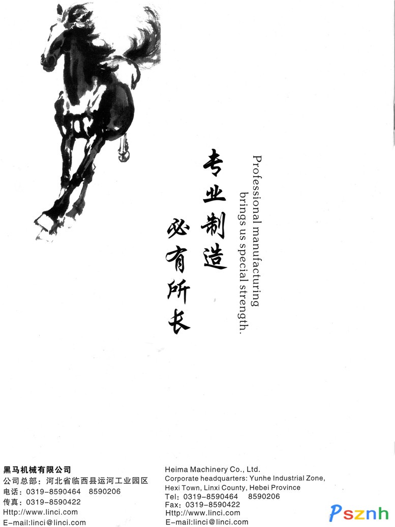 臨西縣黑馬機械有限公司成立于1997年3月,期間曾多次變更企業(yè)名稱,2005年5月經(jīng)全體股東同意企業(yè)名稱變更為“臨西縣黑馬機械有限公司”使用至今。