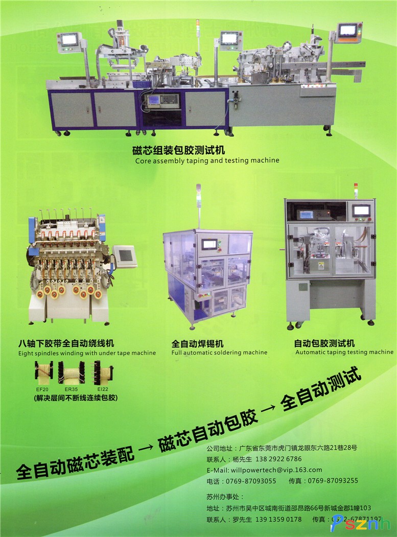 公司一直致力于全自動系列產(chǎn)品的研制,主要產(chǎn)品有:全自動繞線機、全自動音圈機、全自動焊錫機、全自動銅箔焊接機、自動包膠機、真空含浸機、全自動流水線系列及其它相關(guān)性設(shè)備。