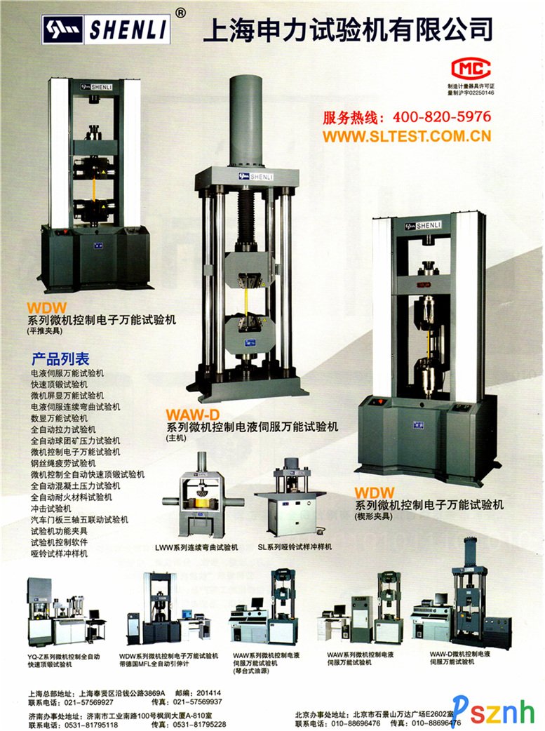 我公司總經(jīng)理楊浩源原是濟南試驗機廠技術(shù)專家、高級工程師,國內(nèi)首家引進電液伺服萬能試驗機和微機控制電子萬能試驗機的主管工程師;總工程師張靜淵原是濟南試驗機廠的廠長,獲國家銀質(zhì)獎?wù)碌?0噸萬能試驗機總設(shè)計師。在前輩的帶領(lǐng)下,年輕的工程技術(shù)人員迅速成長,并將最新的電子技術(shù)和微機控制成果應(yīng)用到試驗機的研制和生產(chǎn),不斷推出領(lǐng)先同業(yè)的產(chǎn)品,獲得用戶的高度評價。申力產(chǎn)品共有七大系列八十多個品種。其主要產(chǎn)品系列有電液式萬能 試驗機、微機顯示電液式萬能試驗機、微機控制電液伺服萬能試驗機、電液式壓力試驗機、恒應(yīng)力壓力試驗機、微機控制電子萬能試驗機等,并可按照客戶要求設(shè)計非標試驗機、訂購專用試驗機附件,對老式試驗機產(chǎn)品進行更新技術(shù)改造。