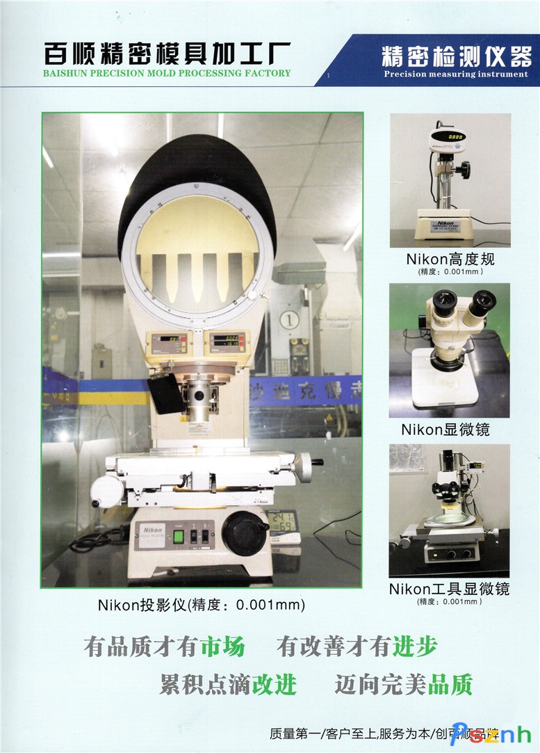 公司擁有高精度檢測(cè)設(shè)備:尼康投影儀Nikon-V12B精度0.001mm、尼康高度規(guī)Nikon精度0.001mm,二點(diǎn)五次元,三豐分離尺,尼康顯微鏡Nikon.
