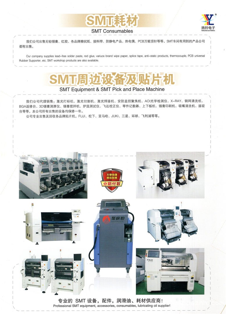 “東莞市揚鈴電子商貿(mào)有限公司”位于東莞有“中國鄉(xiāng)鎮(zhèn)之星”之稱的長安鎮(zhèn)。我們成立于2005年,一直從事二手貼片機買賣,整廠設備回收,貼片機吸嘴,飛達,配件,SMT周邊設備的研發(fā)和生產(chǎn)。并取得了太森潤滑油、捷客斯?jié)櫥?、出光潤滑油的授?quán)代理;自公司成立以來,一直與一些知名優(yōu)秀供應商緊密合作,為OEM及EMS工廠提供先進的生產(chǎn)設備、零配件、耗材及潤滑油。