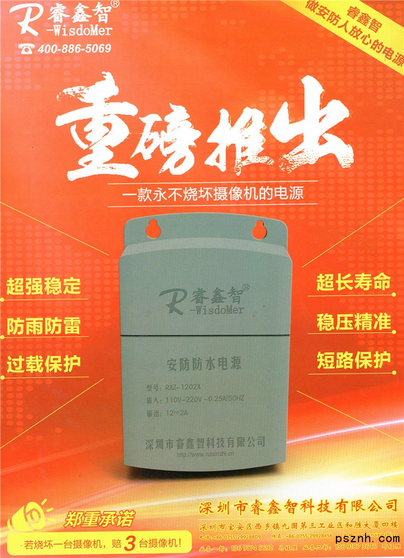 深圳市睿鑫智科技有限公司是一家集研發(fā)、生產(chǎn)、銷售為一體的專業(yè)安防電源生產(chǎn)商,擁有自主國(guó)內(nèi)品牌“睿鑫智”&“R-WisdoMer”國(guó)際品牌,總部設(shè)在深圳。我司主要為安防、視頻、報(bào)警、智能家居、POE交換機(jī)、工業(yè)用電等行業(yè)提供優(yōu)質(zhì)的整體電源解決方案。我們擁有自己的研發(fā)隊(duì)伍,1800平米的生產(chǎn)車間,月產(chǎn)量達(dá)500000套以上。我司產(chǎn)品榮獲多項(xiàng)國(guó)家專利,自2010年成立以來(lái),迄今已獲得"3C資格認(rèn)證"、"ISO9001質(zhì)量體系證"、“FCC & CE認(rèn)證”、“中國(guó)進(jìn)出口檢驗(yàn)合格證”、“質(zhì)量管理優(yōu)秀企業(yè)”等多項(xiàng)證書(shū)。產(chǎn)品遠(yuǎn)銷歐洲、中東、南美、東南亞等27個(gè)國(guó)家。