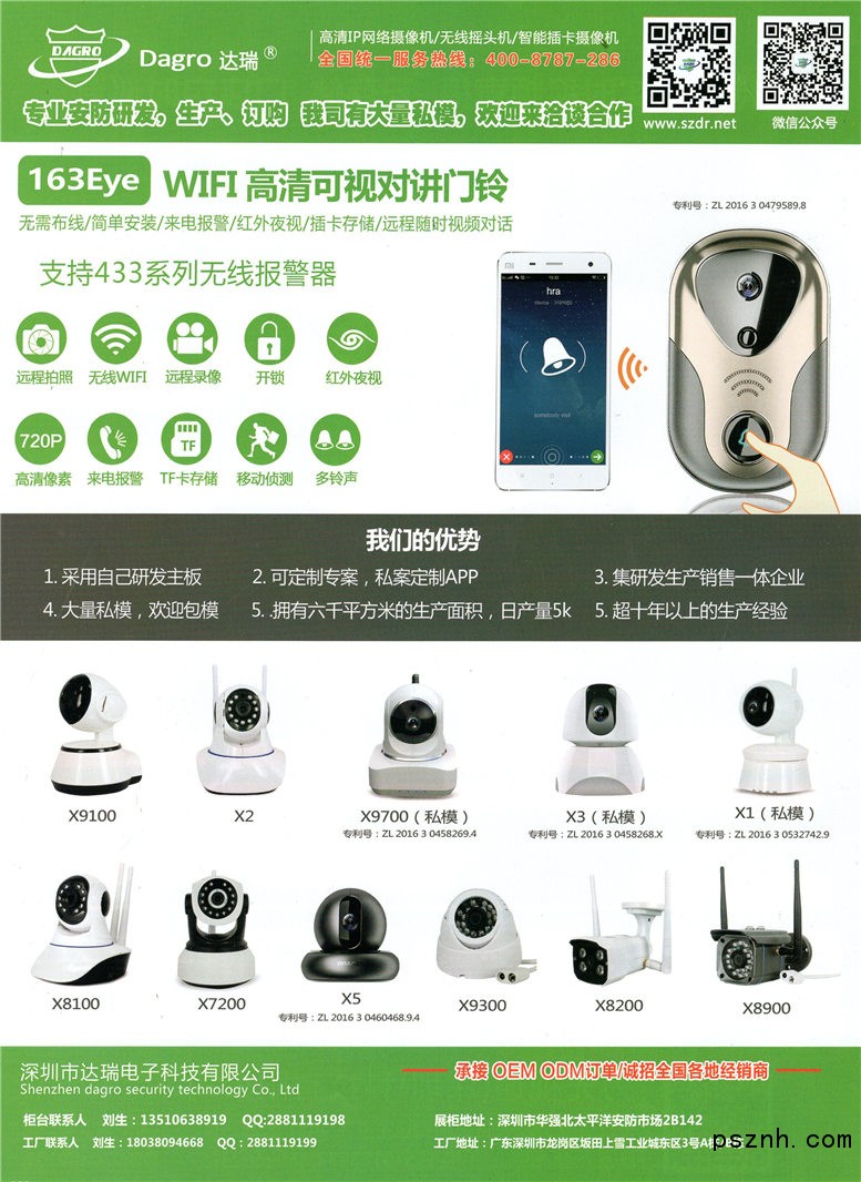 深圳市達(dá)瑞電子科技有限公司 全景攝像機(jī) 可視門鈴 網(wǎng)絡(luò)攝像機(jī)