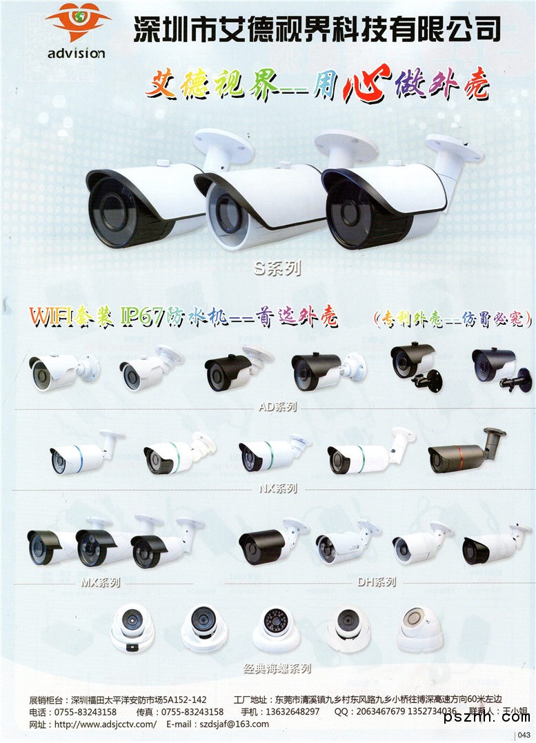 深圳市艾德視界科技有限公司是一家專業(yè)生產(chǎn)監(jiān)控?cái)z像機(jī)外殼并研發(fā)、銷售、為一體的專業(yè)公司。公司擁有一支技術(shù)扎實(shí)、經(jīng)驗(yàn)豐富、凝聚力強(qiáng)、勇于創(chuàng)新的員工隊(duì)伍,特別在設(shè)計(jì)攝像機(jī)外殼方面受用戶贊譽(yù)。公司擁有高素質(zhì)的研發(fā)隊(duì)伍,在CCD攝像機(jī)外殼方面擁有高水準(zhǔn)的開發(fā)技術(shù)、經(jīng)驗(yàn)豐富的技術(shù)支持及生產(chǎn)管理人員。公司具備完善的質(zhì)量保證體系,并定期的對(duì)員工進(jìn)行質(zhì)量知識(shí)及崗位技能培訓(xùn),加強(qiáng)員工的質(zhì)量意識(shí)。公司擁有一支崗位技能精、質(zhì)量意識(shí)強(qiáng)、紀(jì)律性好的生產(chǎn)隊(duì)伍,為生產(chǎn)、銷售高質(zhì)量的產(chǎn)品打下了堅(jiān)實(shí)的基礎(chǔ)。
