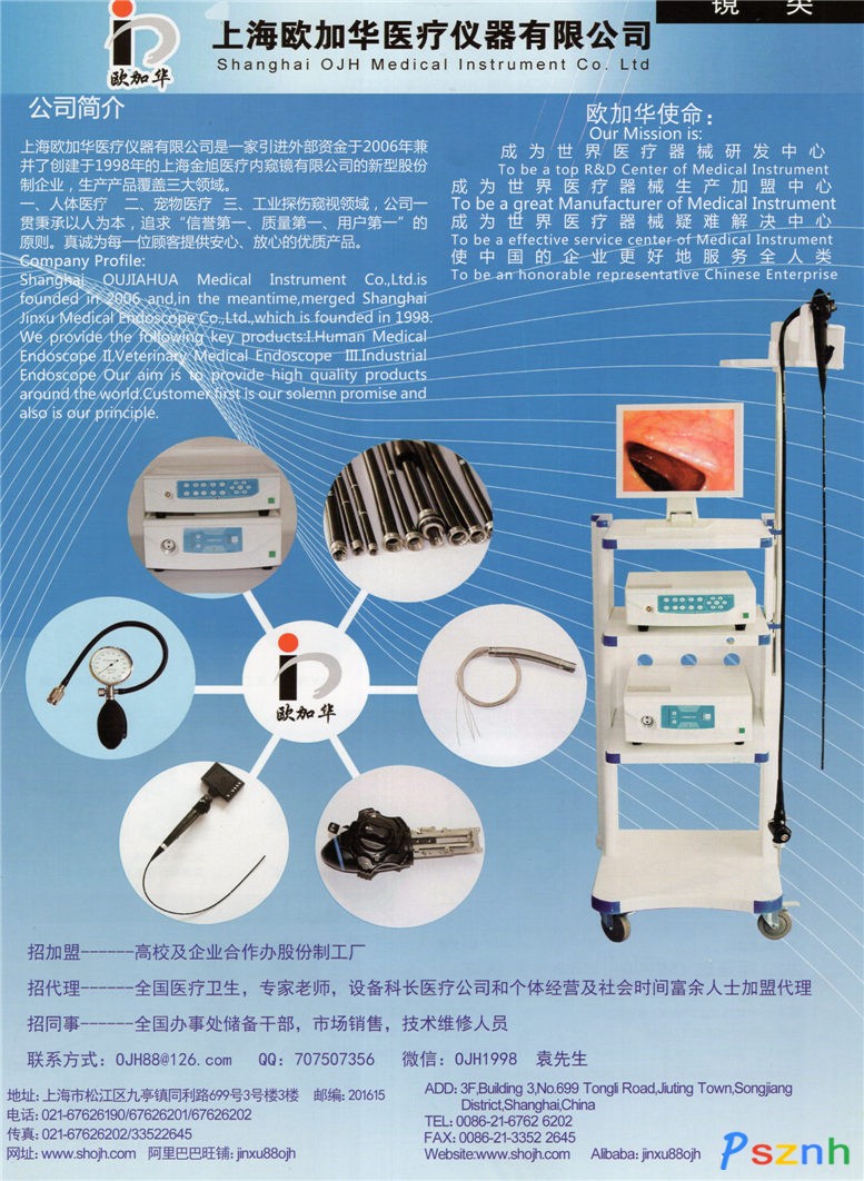 上海歐加華醫(yī)療儀器有限公司是一家引進(jìn)外部資金于2006年兼并了上海金旭醫(yī)療內(nèi)窺鏡有限公司的新型股份制企業(yè)。公司是生產(chǎn)醫(yī)用光纖內(nèi)窺鏡系列,醫(yī)用電子內(nèi)窺鏡系列,工業(yè)光纖內(nèi)窺鏡系列,工業(yè)電子內(nèi)窺鏡系列的專(zhuān)業(yè)廠家。 公司積極吸收國(guó)內(nèi)外內(nèi)窺鏡產(chǎn)品技術(shù),積極采用新材料、新工藝,使產(chǎn)品在質(zhì)量上得到飛速提高 ,提供優(yōu)良的產(chǎn)品,完善的售后服務(wù)是公司的宗旨, 信譽(yù)第一、質(zhì)量第一、用戶第一”的莊重承諾是公司的一貫原則. 工業(yè)電子內(nèi)窺鏡、工業(yè)纖維內(nèi)窺鏡、工業(yè)直管內(nèi)窺鏡主要適用于:電子電器工業(yè)、機(jī)械工業(yè)、航空、航天、汽車(chē)、石油化工、電力、發(fā)電機(jī)組、變壓器、鐵路、船舶、冶金、鍋爐、壓力容器、建筑工程、市政、鉆井、物探、考古、安防、搜救、刑偵、海關(guān)、軍隊(duì)等領(lǐng)域,同時(shí)還可用于拍攝管道、洞穴、海底珊瑚焦等。 工業(yè)內(nèi)窺鏡產(chǎn)品性能特點(diǎn):能夠進(jìn)入到深度為1-100米的各種肉眼所觀察不到的內(nèi)部進(jìn)行真實(shí)、高效的觀察。將觀察到的圖像通過(guò)圖像處理器傳輸?shù)奖O(jiān)視器以便觀察,通過(guò)電腦對(duì)檢測(cè)部位進(jìn)行編輯、制圖、打印報(bào)告單格式,向上級(jí)主管部門(mén)及時(shí)報(bào)告產(chǎn)品質(zhì)量情況并保存于電腦內(nèi),方便于階段性檢查和新舊產(chǎn)品質(zhì)量的對(duì)比。