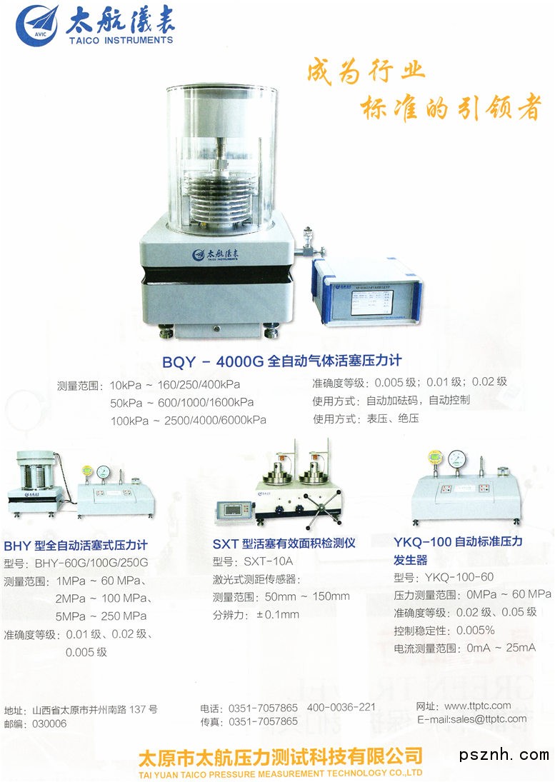公司匯集了一批經(jīng)驗(yàn)豐富的高級(jí)專業(yè)管理人員、正高級(jí)工程師、高級(jí)工程師、部聘技師,依托先進(jìn)的生產(chǎn)設(shè)備、完善的工藝流程、可靠的軍工質(zhì)量保證體系以及國內(nèi)一流的測試設(shè)備生產(chǎn)線,研制、生產(chǎn)有自主知識(shí)產(chǎn)權(quán)的國際先進(jìn)水平的壓力測試設(shè)備。主要產(chǎn)品有:高精度綜合測試儀、動(dòng)靜壓檢測儀、大氣數(shù)據(jù)測試儀;氣體活塞壓力計(jì);標(biāo)準(zhǔn)活塞壓力計(jì);全自動(dòng)氣體活塞壓力計(jì);氣體全自動(dòng)標(biāo)準(zhǔn)壓力發(fā)生器(全自動(dòng)壓力控制器),液體全自動(dòng)標(biāo)準(zhǔn)壓力發(fā)生器(全自動(dòng)壓力控制器);數(shù)字壓力表;數(shù)字壓力計(jì);氣體手泵、液體手泵;數(shù)字氣壓儀、振動(dòng)筒氣壓儀;空盒氣壓表檢定裝置等。產(chǎn)品廣泛應(yīng)用于航空、航天、部隊(duì)、氣象、計(jì)量、礦山、石油、石化、電力、熱力、冶金等行業(yè),享有較高聲譽(yù)。