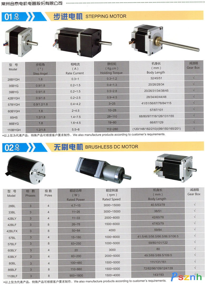 常州合泰電機(jī)電器股份有限公司是一家具有新型管理模式和強(qiáng)大技術(shù)實(shí)力的微電機(jī)生產(chǎn)制造企業(yè)。專業(yè)生產(chǎn)混合式步進(jìn)電機(jī)、直流無(wú)刷電機(jī)、步進(jìn)驅(qū)動(dòng)器等,年產(chǎn)量達(dá)300萬(wàn)臺(tái)。產(chǎn)品主要應(yīng)用于:打印機(jī)、打票機(jī)、雕刻機(jī)、醫(yī)療儀器、舞臺(tái)燈光、紡織工業(yè)等各行各業(yè)自動(dòng)化設(shè)備儀器中。