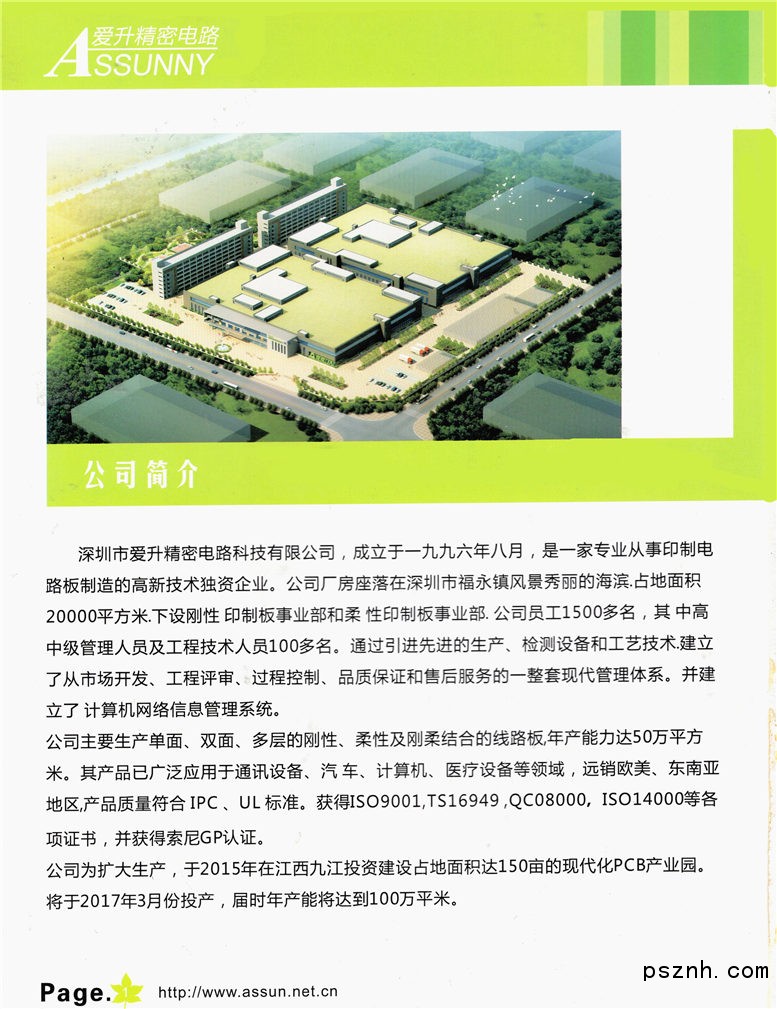 深圳市愛(ài)升精密電路科技有限公司,成立于一九九六年八月,是一家專業(yè)從事印制 電路板制造的高新技術(shù)獨(dú)資民營(yíng)企業(yè).近年來(lái),公司規(guī)模高速擴(kuò)展.迅速朝集團(tuán)化方 向大步邁進(jìn)。