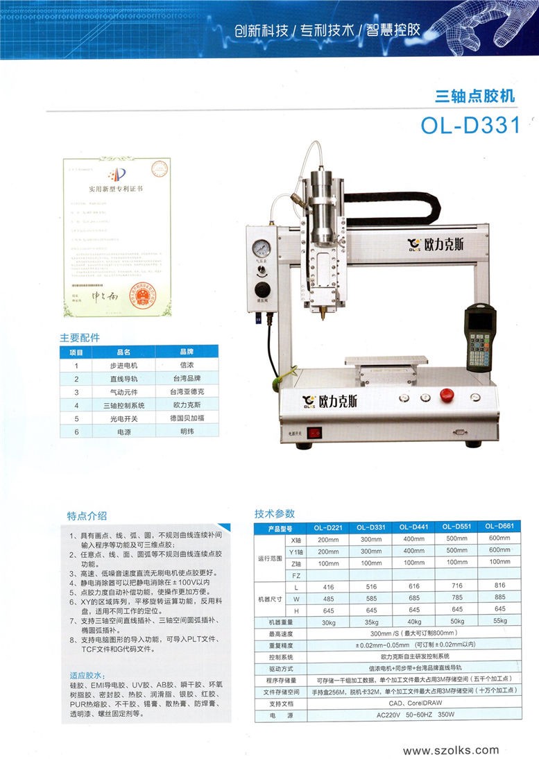 | 深圳市歐力克斯科技有限公司是一家與眾不同的高新技術制造型廠商,專注于制造熔膠機、鎖螺絲機、點膠機、灌膠機流體控制設備事業(yè),可定制非標式設備。公司成立于2007年,現(xiàn)有約3000平米寬敞標準化廠房,建立了完善的生產管理制度和嚴格的質量監(jiān)督檢驗體系,研發(fā)、生產、制造、銷售、負責人問責制管理,為我們產品的每一個細節(jié)盡可能達到“零”缺陷的質量保證。歐力克斯技術團隊成員均為本科以上學歷并具有10年以上點膠機和灌膠機、熔膠機、鎖螺絲機設備的研發(fā)、生產、售后工作經驗;具備專業(yè)流體計量控制知識,具有優(yōu)秀的產品研發(fā)、設計能力,能快速響應市場和滿足客戶需求,致力于點膠機、灌膠機、熔膠機、鎖螺絲機的設備的研究、設計、模似、分析、實驗工作。 在勞動力缺乏、人力成本越來越高的今天,我們秉承一貫專注和持續(xù)改時的創(chuàng)新精神和歐力克斯自主知識產權的核心技術不斷推陳出新,成功有效地為客戶由傳統(tǒng)的人工點膠、灌膠作業(yè)轉化到先進精確的全自動化點膠、灌膠作業(yè)中來,更好的為廣大客戶擴大生產規(guī)模、提升公司形象、節(jié)約膠水成本、提高工作效率。 |