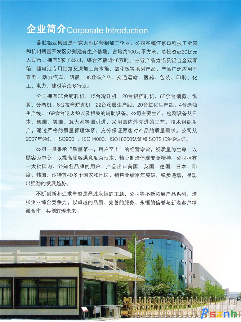 鼎勝鋁業(yè)集團(tuán)是一家專業(yè)從事生產(chǎn)各類鋁板、鋁帶、鋁箔的高科技企業(yè),在江蘇鎮(zhèn)江和浙江杭州分別建有生產(chǎn)基地,是目前全球最大的空調(diào)箔生產(chǎn)商,是中國最大的雙零箔生產(chǎn)商。