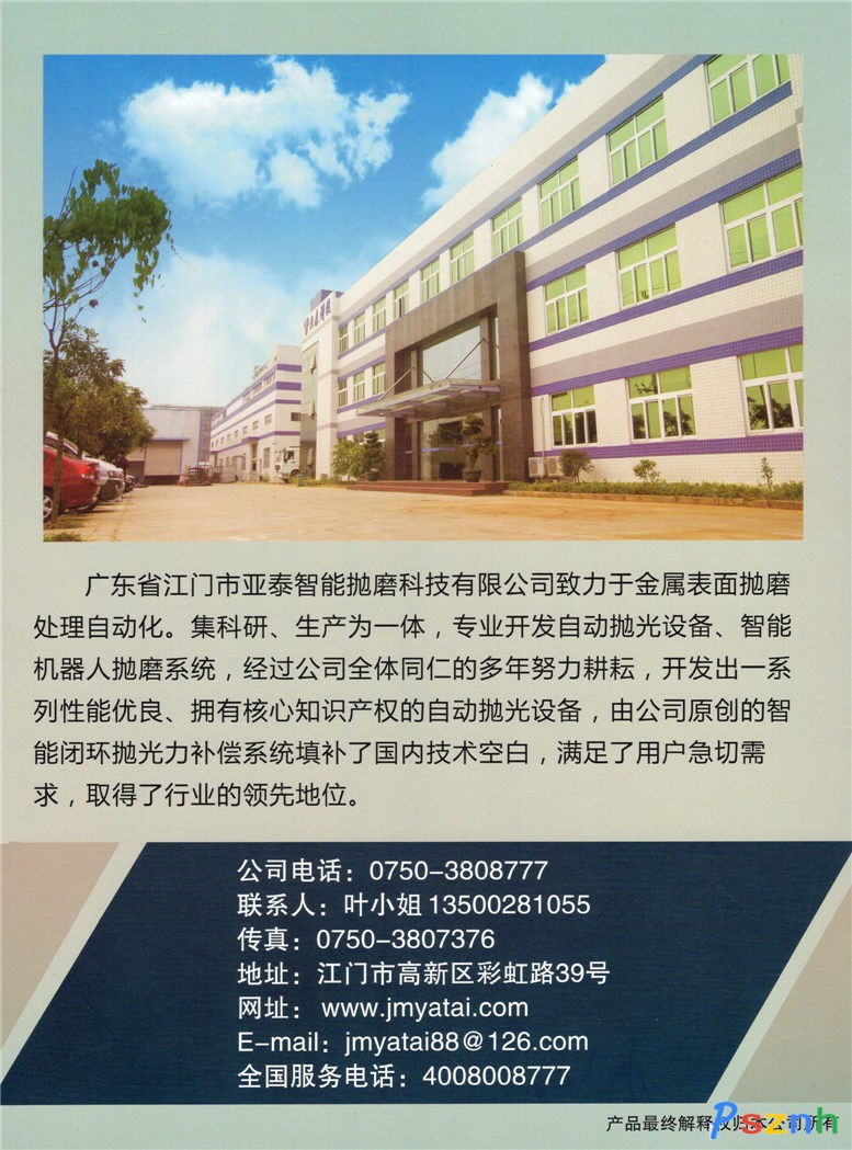 江門市亞泰智能拋磨科技有限公司_自動(dòng)運(yùn)輸式系列_自動(dòng)圓盤系列_數(shù)控機(jī)械人系列_機(jī)械人,砂光機(jī)_自動(dòng)砂光機(jī)系列點(diǎn)擊:1508 評(píng)論:0 查看原圖 |