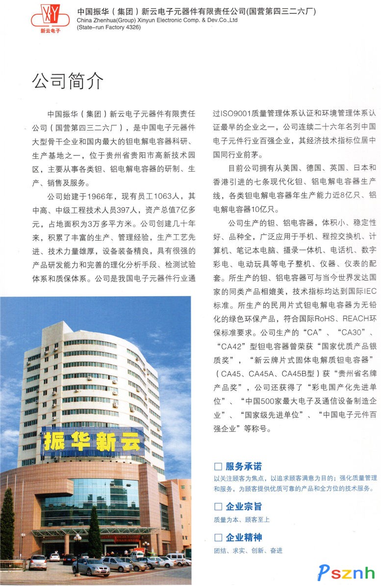中國(guó)振華(集團(tuán))新云電子元器件有限責(zé)任公司(國(guó)營(yíng)第四三二六廠),隸屬于中國(guó)振華電子集團(tuán)有限公司,是上市公司“中國(guó)振華(集團(tuán))科技股份有限公司”旗下之主要成員企業(yè)和我國(guó)電子元器件大型重點(diǎn)骨干企業(yè),也是我國(guó)電子元器件重點(diǎn)配套企業(yè),截止2017年,已連續(xù)30年榮登中國(guó)電子元件百?gòu)?qiáng)企業(yè)排行榜,并且獲得歐洲航天局A級(jí)供應(yīng)商資格。
