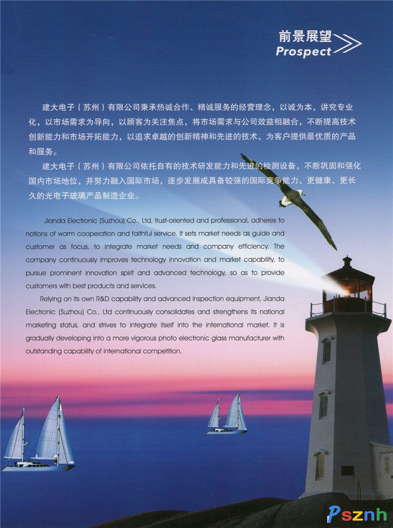 1997年,蘇州新區(qū)建達(dá)電子材料廠注冊成立,主力從事二極管玻管、玻殼的生產(chǎn)與銷售。為配合制造業(yè)務(wù)不斷擴(kuò)展及規(guī)?;陌l(fā)展方針,于2004年改名為建大電子(蘇州)有限公司,成為一家集光電子玻璃產(chǎn)品的科研開發(fā)、生產(chǎn)制造、市場營銷為一體的高科技企業(yè)。