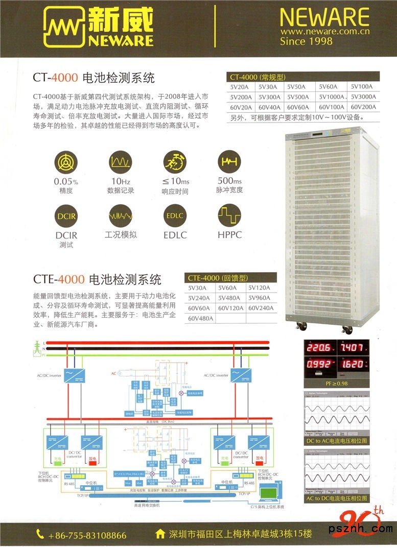 深圳市新威爾電子有限公司始創(chuàng)于1998年,致力于為全球電池生產(chǎn)企業(yè)、新能源汽車(chē)生產(chǎn)企業(yè)、國(guó)家質(zhì)檢部門(mén)、院校及科研機(jī)構(gòu)提供高性能電池檢測(cè)系統(tǒng)、動(dòng)力電池及儲(chǔ)能電池檢測(cè)系統(tǒng)、節(jié)能逆變系統(tǒng)、儲(chǔ)能逆變系統(tǒng)、電池生產(chǎn)信息管理系統(tǒng)及電池設(shè)備資產(chǎn)管理系統(tǒng)等。