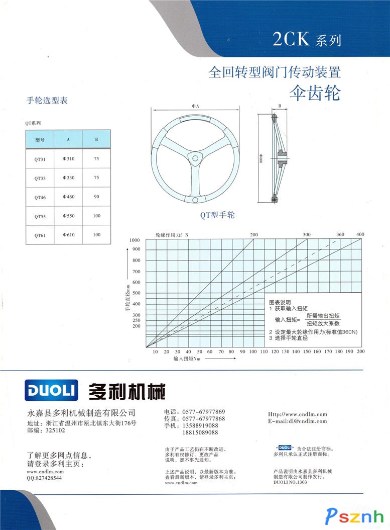 多利機(jī)械主導(dǎo)產(chǎn)品有閥門(mén)傘齒輪驅(qū)動(dòng)裝置系列,有SB系列CK系列和BA系列??蛇x單級(jí)驅(qū)動(dòng)和雙級(jí)驅(qū)動(dòng),主體材質(zhì)分為WCB和HT200,QT450等。廣泛使用于閘閥,截止閥。