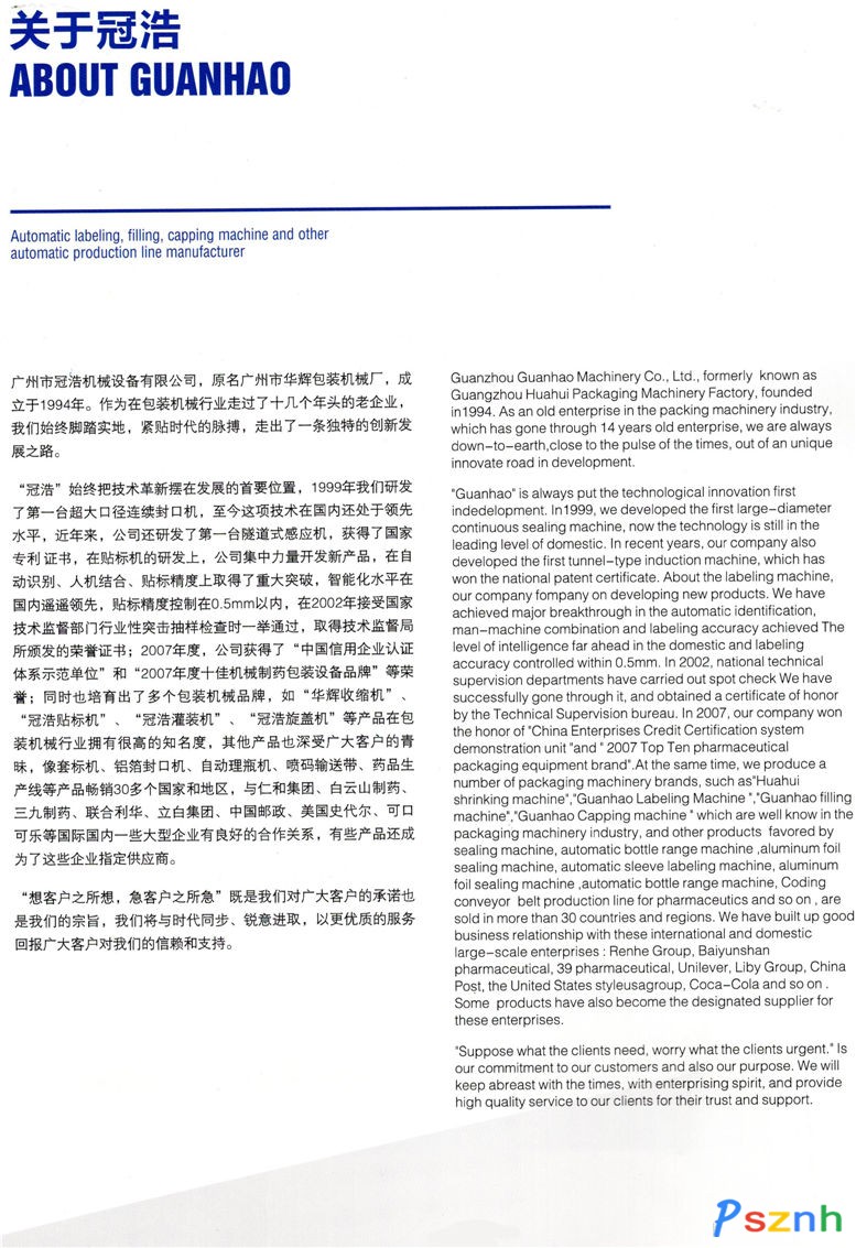 “冠浩”,始終把技術(shù)革新擺在發(fā)展的首要位置,1999年我們研發(fā)了第一臺(tái)超大口徑連續(xù)封口機(jī),至今這項(xiàng)技術(shù)在國內(nèi)還處于領(lǐng)先的水平,近年來,公司還研發(fā)了第一臺(tái)隧道式感應(yīng)機(jī),獲得了國家專利證書,在貼標(biāo)機(jī)的研發(fā)上,公司集中力量開發(fā)新產(chǎn)品,在自動(dòng)識(shí)別,人機(jī)結(jié)合,貼標(biāo)精度上取得了重大突破,智能化水平在國內(nèi)遙遙領(lǐng)先,貼標(biāo)精度控制在0.5mm以內(nèi),在2002年接受國家技術(shù)監(jiān)督部門行業(yè)突擊檢查時(shí)一舉通過,取得技術(shù)監(jiān)督局所頒發(fā)的榮譽(yù)證書;2007年度,公司獲得了“中國信用企業(yè)認(rèn)證體系示范單位”和“2007年度十佳機(jī)械制藥包裝設(shè)備品牌”等榮譽(yù);