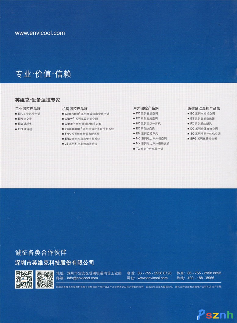 深圳市英維克科技股份有限公司是專注于機(jī)房與設(shè)備環(huán)境控制技術(shù)的國(guó)家級(jí)高新技術(shù)企業(yè)。掌握著世界領(lǐng)先的制冷系統(tǒng)核心技術(shù)、控制技術(shù)、結(jié)構(gòu)設(shè)計(jì)技術(shù),擁有多項(xiàng)專利。經(jīng)過(guò)多年積累,形成了數(shù)據(jù)中心和數(shù)據(jù)接入站點(diǎn)溫控及節(jié)能體系,方案及產(chǎn)品已廣泛應(yīng)用于中國(guó)及海外市場(chǎng)。    解決方案包括:數(shù)據(jù)中心機(jī)房溫控及節(jié)能解決方案、中小型機(jī)房溫控方案、微模塊機(jī)柜解決方案、集裝箱及模塊化數(shù)據(jù)中心解決方案、基站與接入站點(diǎn)溫控及節(jié)能解決方案、通信戶外機(jī)柜溫控及節(jié)能方案、特殊應(yīng)用環(huán)境定制類溫控及節(jié)能方案。        英維克公司通過(guò)了ISO9001質(zhì)量管理體系、ISO14001環(huán)境管理體系和OHSAS18001職業(yè)健康管理體系認(rèn)證,產(chǎn)品通過(guò)了CCC、CE、UL、TUV、中國(guó)節(jié)能認(rèn)證等檢測(cè)認(rèn)證。采用IPD集成產(chǎn)品開發(fā)流程組織技術(shù)研發(fā)與生產(chǎn),運(yùn)用JIT與TQC的供應(yīng)鏈管理模式,高質(zhì)高效地響應(yīng)客戶需求。        作為中國(guó)通信行業(yè)標(biāo)準(zhǔn)化協(xié)會(huì)全權(quán)會(huì)員單位,英維克積極參與相關(guān)行業(yè)標(biāo)準(zhǔn)的修訂。