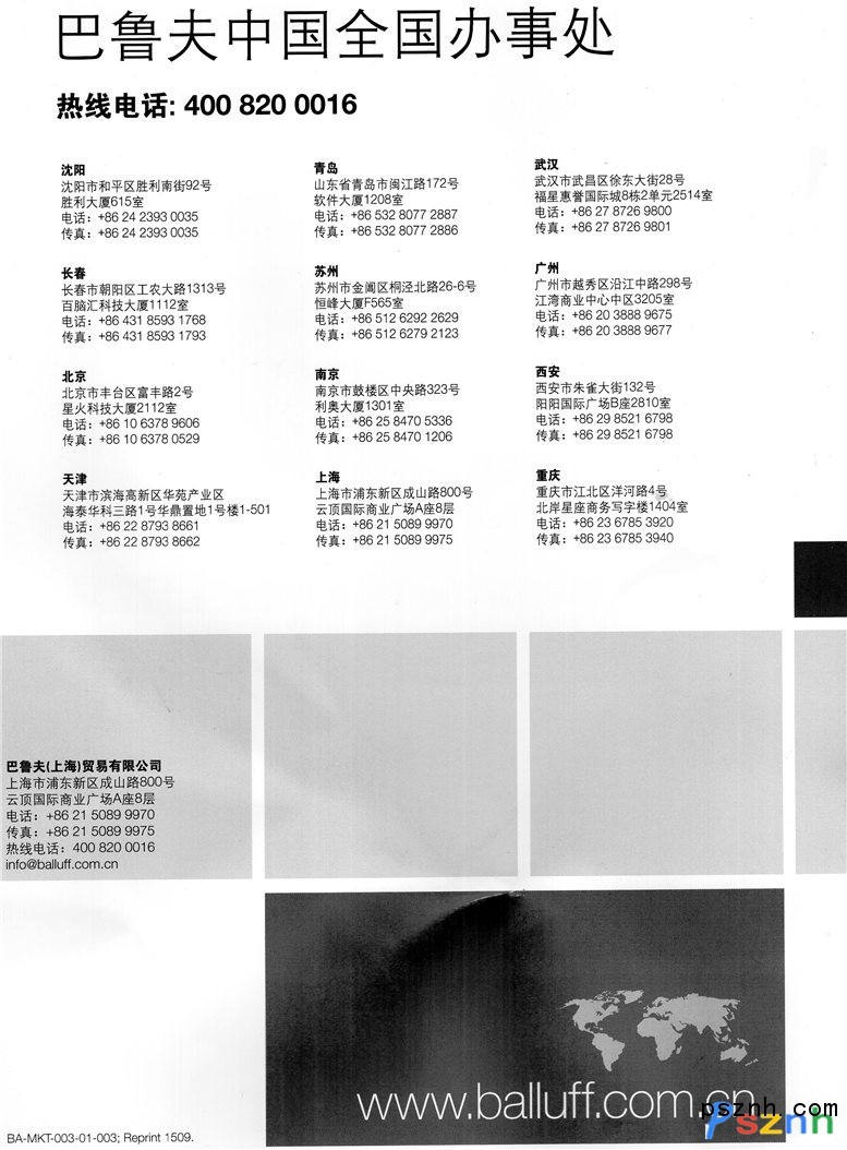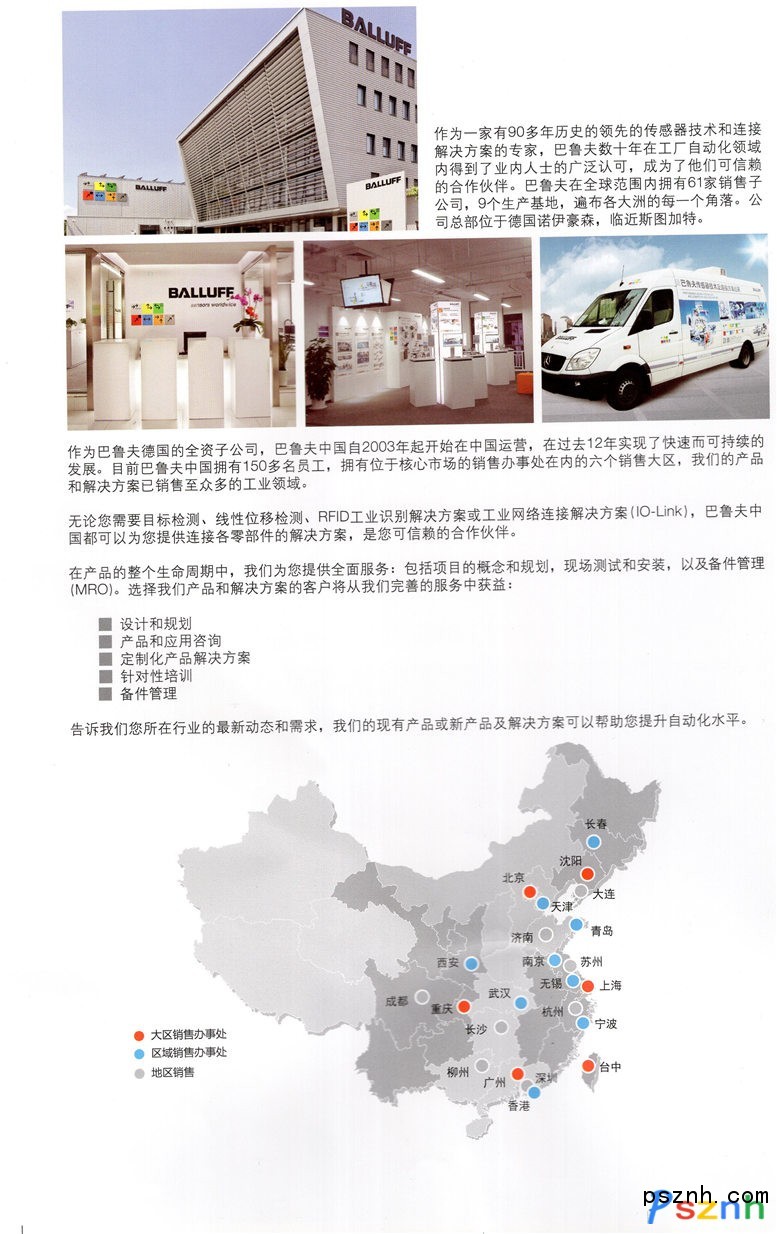 巴魯夫自動化(上海)有限公司作為一家中型企業(yè),成立于毗鄰斯圖加特市的諾伊豪森,經(jīng)過家族四代人的經(jīng)營,已發(fā)展成為面向全球的領(lǐng)先跨國集團。企業(yè)富有悠久傳統(tǒng)及維系多年的客戶關(guān)系,它同時也是客戶眼中重要的創(chuàng)新合作伙伴與市場先驅(qū)。  我們的企業(yè)很早便向國際市場敞開了大門。80年代初期直至后來很長的一段時間內(nèi),巴魯夫是巴西第一家及唯一一家從事自主生產(chǎn)的傳感器制造商。如今巴魯夫不再僅僅位于諾伊豪森,而是遍布?xì)W洲、亞洲、北美、南美和其他所有的重要市場,以便能夠更好地理解并服務(wù)我們的客戶,同時給予客戶所需:所有自動化領(lǐng)域的高品質(zhì)傳感器、識別及網(wǎng)絡(luò)解決方案。