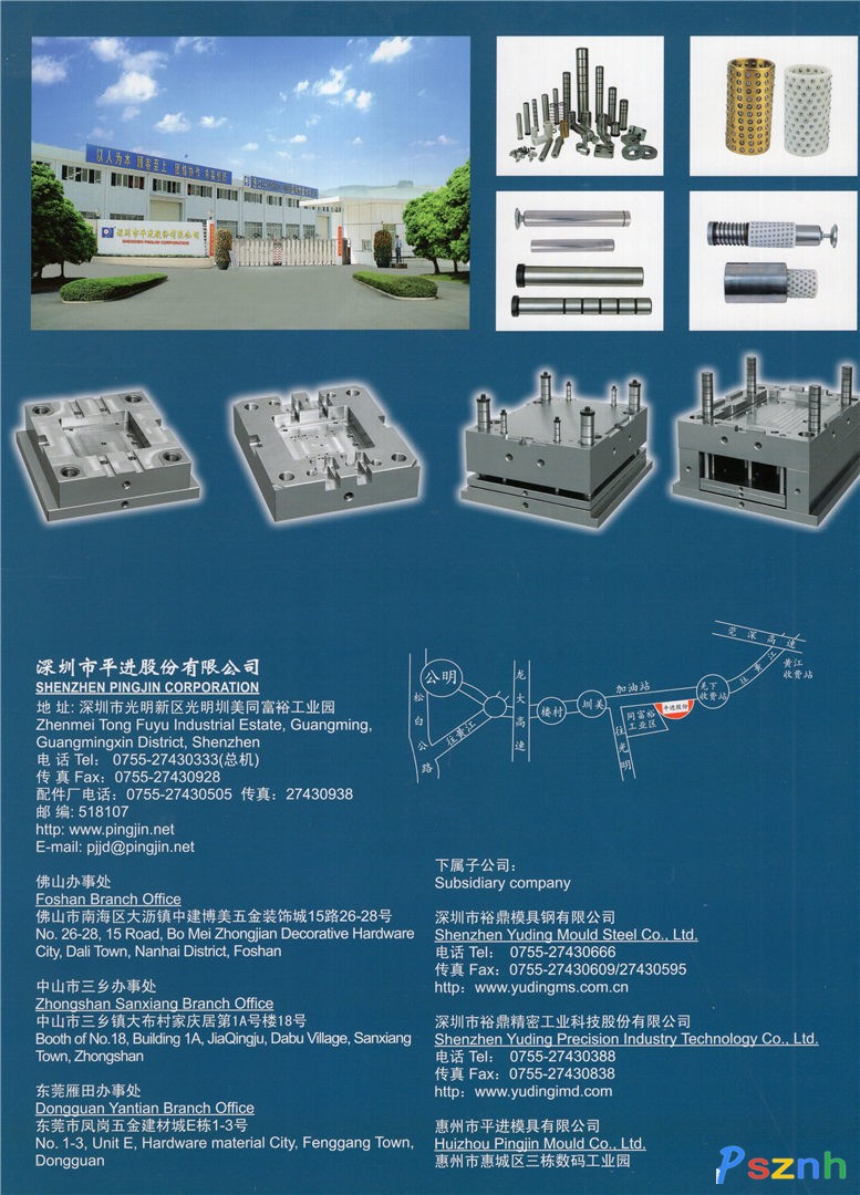 深圳市平進(jìn)股份有限公司(以下簡(jiǎn)稱“公司”)前身為深圳市平進(jìn)模具有限公司,成立于1997 年2月20日,是專業(yè)從事模具產(chǎn)業(yè)的大型民營(yíng)高科技制造企業(yè),總部位于深圳市光明街道同富裕工業(yè)園旁。2010 年12 月2 日,公司經(jīng)整體改制變更為股份有限公司,注冊(cè)資本21000 萬元人民幣。旗下三家全資子公司:深圳市裕鼎模具鋼有限公司、深圳市裕鼎精密工業(yè)科技有限公司及惠州市平進(jìn)模具有限公司。