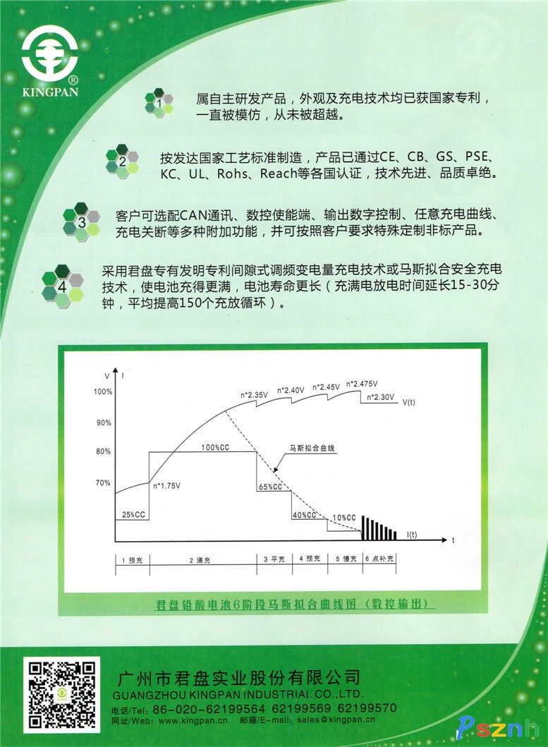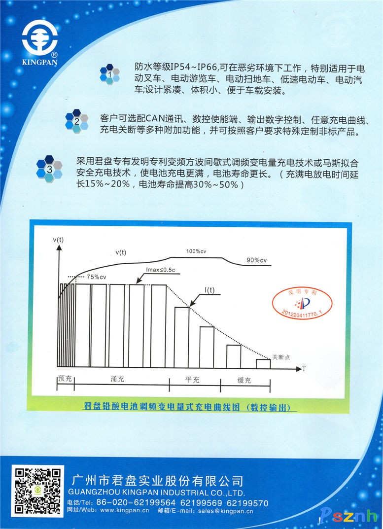 廣州市君盤實業(yè)股份有限公司擁有獨(dú)立自主研發(fā)能力,在鉛酸電池、鋰電池、鎳氫電池三大類充電理論上有重大突破與創(chuàng)新,獲得各類實用新型、發(fā)明專利數(shù)十項,其中“間歇式調(diào)頻變電量充電技術(shù)”具有國際先進(jìn)水平,使充電時間縮短三分之一,充滿放電能力延長20%,電池使用壽命延長30%(現(xiàn)已申請30多國發(fā)明專利)。