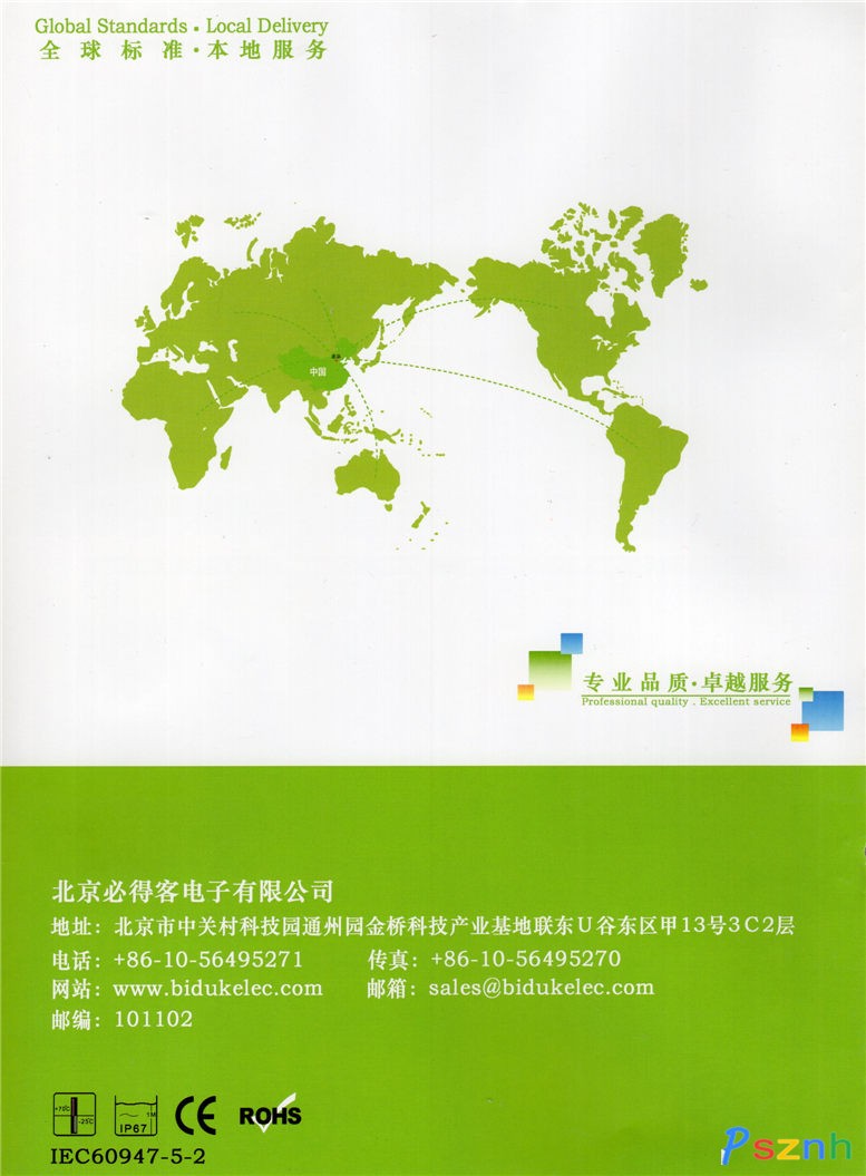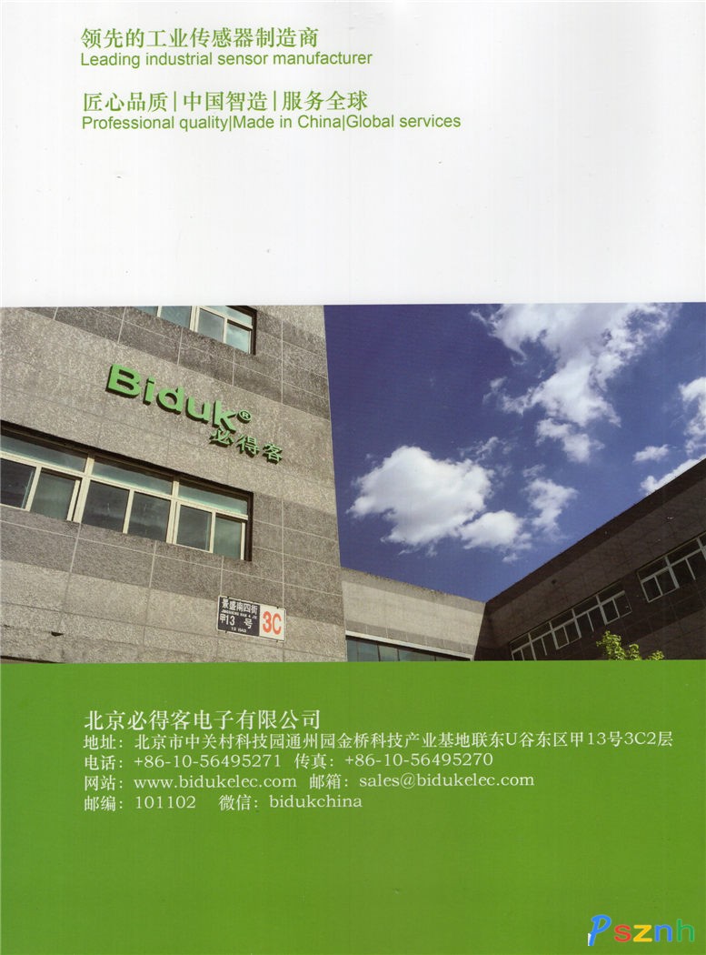北京必得客電子有限公司 Biduk做為歐美一些知名品牌OEM生產制造商,多年來始終致力于生產、研發(fā)工業(yè)自動化領域電感式傳感器、電容式傳感器、光電式傳感器等工控產品。產品研發(fā)與生產嚴格按照IEC國際標準來設計與控制,至今已匯聚具有豐富傳感器經驗高科技人才,先進的生產工藝和完善的檢測設備,嚴格按照ISO9001質量管理體系要求進行管理,產品已通過嚴格的EMC(電磁兼容性)、IP防護等級、振動沖擊、高低溫等國際標準測試并通過歐盟CE認證和ROHS檢測。  公司擁有十幾個系列數千種不同種類規(guī)格功能產品。如今在專業(yè)領域內,公司產品和服務的廣度和深度深得客戶親賴,業(yè)務范圍也隨之擴及全球。我們的足跡遍布世界航空航天、鐵路、港口、冶金、礦山、機床、紡織、電梯、石油化工、印刷、包裝、食品、建筑、汽車、等行業(yè)。為客戶提供國際標準的多種類接近傳感器和多方位快捷的技術服務支持。