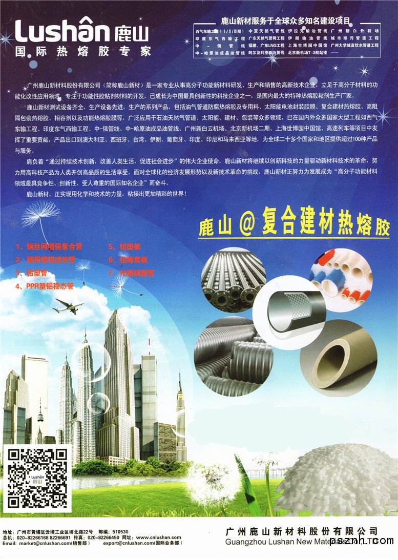 廣州鹿山新材料股份有限公司(簡稱:鹿山新材)是一家提供高分子功能新材料的高新技術(shù)企業(yè),致力于用化學(xué)和技術(shù)的力量粘接出更加精彩的世界。 從創(chuàng)立之初,鹿山新材就確立了“通過持續(xù)技術(shù)創(chuàng)新,改善人類生活,促進社會進步”的偉大使命。利用領(lǐng)先的膠粘劑理論與技術(shù),開發(fā)出切合市場需求的系列產(chǎn)品,從功能性聚烯烴熱熔膠到太陽能電池封裝膠膜,從功能熱熔膠膜到相容劑,廣泛應(yīng)用于石油天然氣管道、復(fù)合建材、高阻隔包裝、太陽能電池、汽車等多個領(lǐng)域,為全球二十多個國家和地區(qū)提供了超過100種的產(chǎn)品與服務(wù)。未來10年,鹿山新材將繼續(xù)以高分子材料技術(shù)為基礎(chǔ),以創(chuàng)新科技驅(qū)動社會進步,努力用高科技產(chǎn)品為人類開創(chuàng)高品質(zhì)的生活享受。 基于“科技,因您而變”的創(chuàng)新理念,鹿山新材已經(jīng)成為中國最具創(chuàng)新性的科技企業(yè)之一。面對全球化的經(jīng)濟發(fā)展形勢以及新技術(shù)革命的挑戰(zhàn),鹿山新材正蓄勢待發(fā),為發(fā)展成為“高分子功能材料領(lǐng)域最具競爭性、創(chuàng)新性、受人尊重的國際知名企業(yè)”而奮斗。