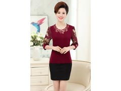 蘇州市價(jià)格優(yōu)惠的媽媽裝批發(fā)-新型媽媽裝七分袖蕾絲鏤空T恤衫