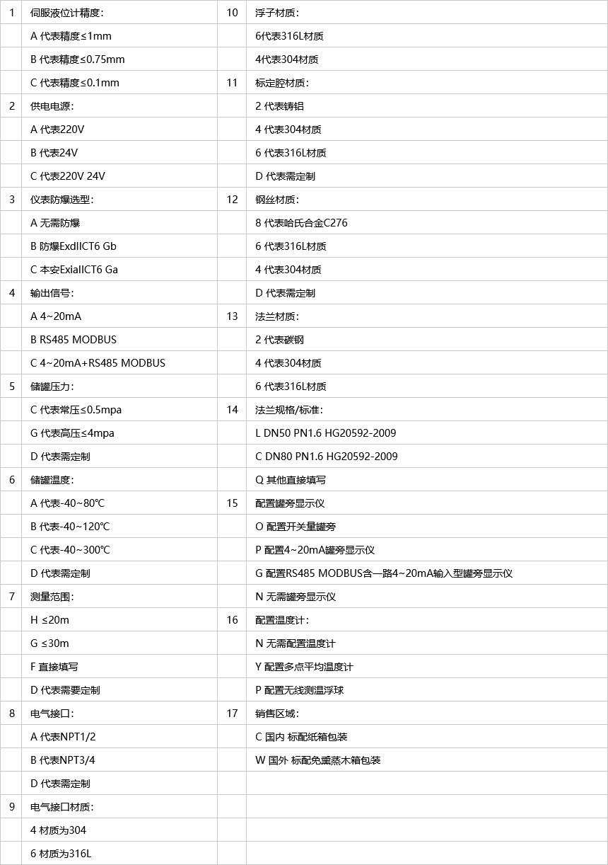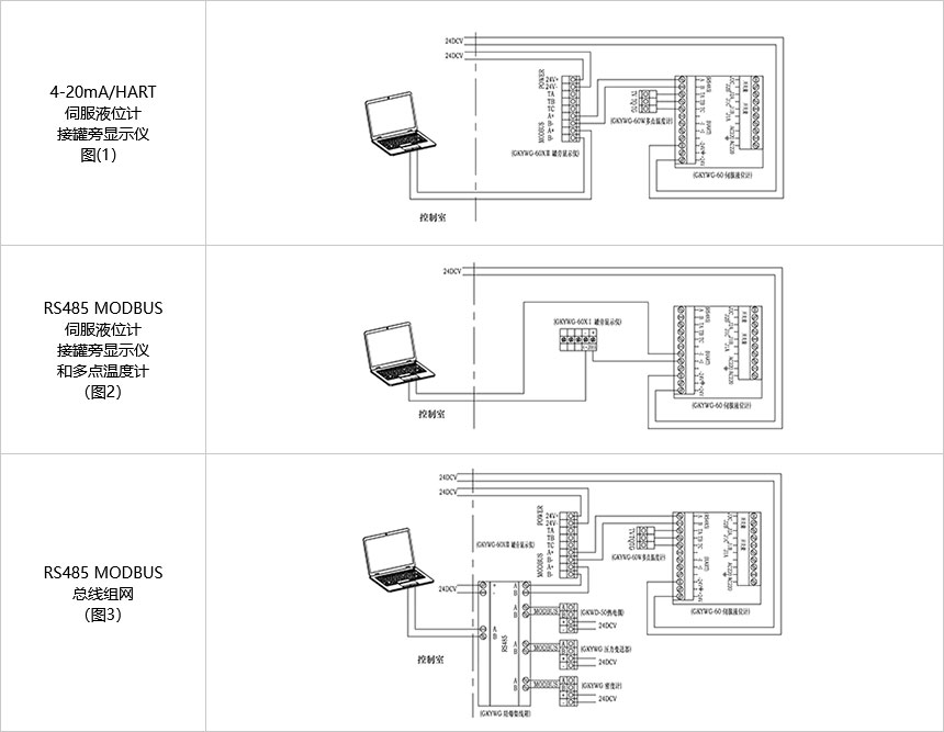 伺服液位計(jì)通信方式4-20mA/HART、RS485 MODBUS