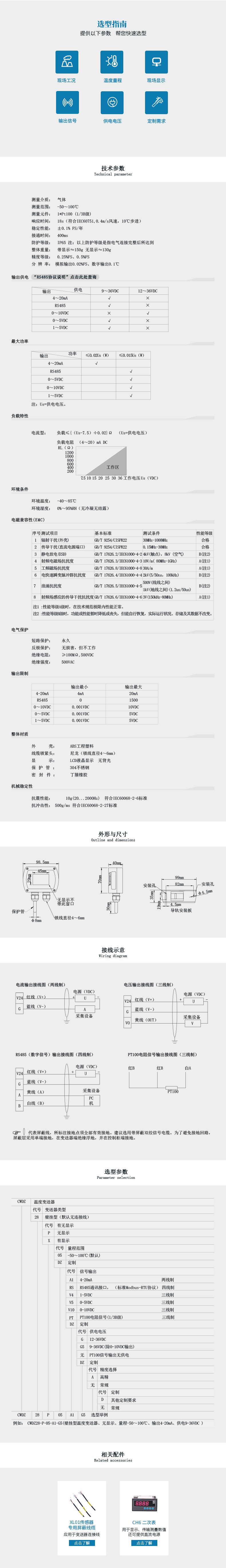 輸出:4~20mA、RS485、Pt100、0~10VDC、
