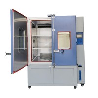 整體分為,試驗室、電控柜、機倉三個組合而成:左側上方為試驗室,由保溫層試驗室內膽組成,向左單開門型式出入;電控柜位于右側,面板主要由溫度控制儀、開關按扭、故障保護指示燈組合而成;機倉置于試驗室下方,由過濾器、電磁閥、線路部分、壓縮機等配件組成。