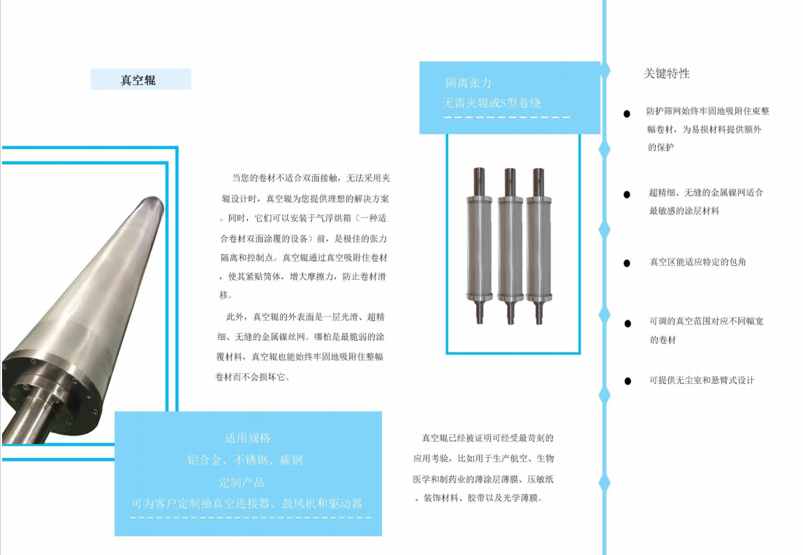 2、與傳統(tǒng)的轉(zhuǎn)移輥相比,該輥的特殊技術(shù),防止了灰塵及其他異物的吸入,大大的提高了使用壽命:特殊吸附方式,解決了薄膜拉伸和斷裂的問題,是較薄的材質(zhì)實現(xiàn)涂布和印刷作業(yè)過程中牽引的不二選擇。