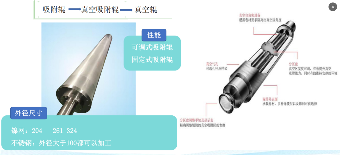 1、卷材的最大寬度,最小寬度,同一支輥子的材料寬度發(fā)生變生,需要用可調(diào)吸附輥,寬度不變則用固定式吸附輥。
